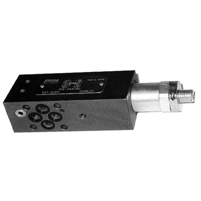 Anfrage für dieses Produkt!Die Ventile TV2-043/M und TV2-063/M sind als Zwischenplattenventile NG04 und NG 06 konzipiert. Sie bestehen aus einem Gehäuse, einem Wechselventil und einer Druckwaage mit Steuerkolben.