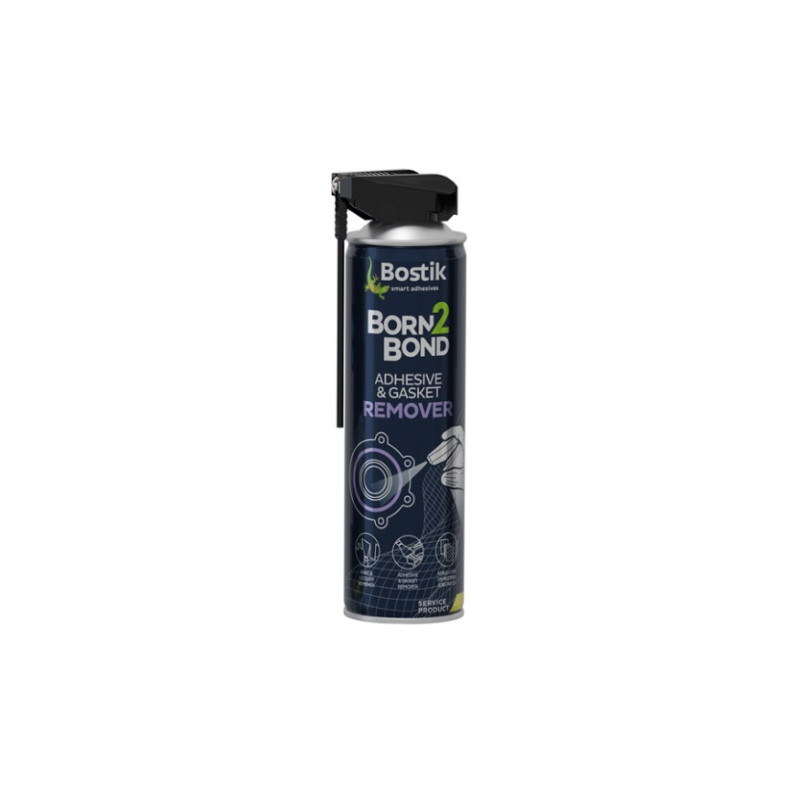 Bostik Born2Bond Adhesive and Gasket Remover is easy to apply and creates a foam-like layer, softening old gaskets and cured adhesives for removal within 15 minutes. It can be applied on metal, wood, glass, ceramics, polyethylene and polypropylene. It is not recommendable to apply it on sensitive plastics, such as PVC, synthetics or linoleum. Test plastic compatibility before use on a non-visible spot.