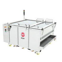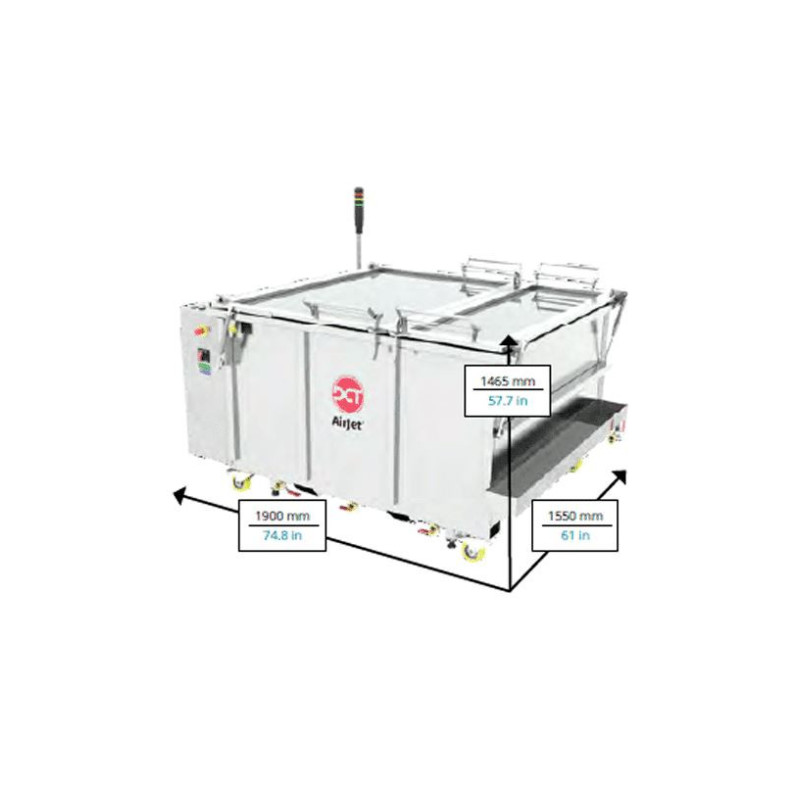 AirJet® 4127 CRD is designed for maintenance cleaning of reflow ovens and wave soldering machine parts. All processes are automated and take place in 3 separate process chambers, which are also storage tanks. Cleaning takes place in the first inlet chamber, where the operator places the basket of parts. Then, the operator manually moves the cleaned basket to the secondary rinse chamber. The operator then moves the basket to the last drying chamber. All 3 chambers can be used at the same time, which increases the cleaning capacity of the machine and reduces cross-contamination compared to single-chamber systems.