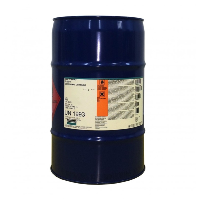 DOWSIL 1-2577 also known as Dow Corning 1-2577 is One-part, RTV cure, transparent medium viscosity conformal coating with firm, abrasion resistant surface after cure. It is suitable for protective coating for rigid and flexible circuit boards and for electronic printed wiring board (PWB) applications, particularly those requiring toughness and abrasion resistance.