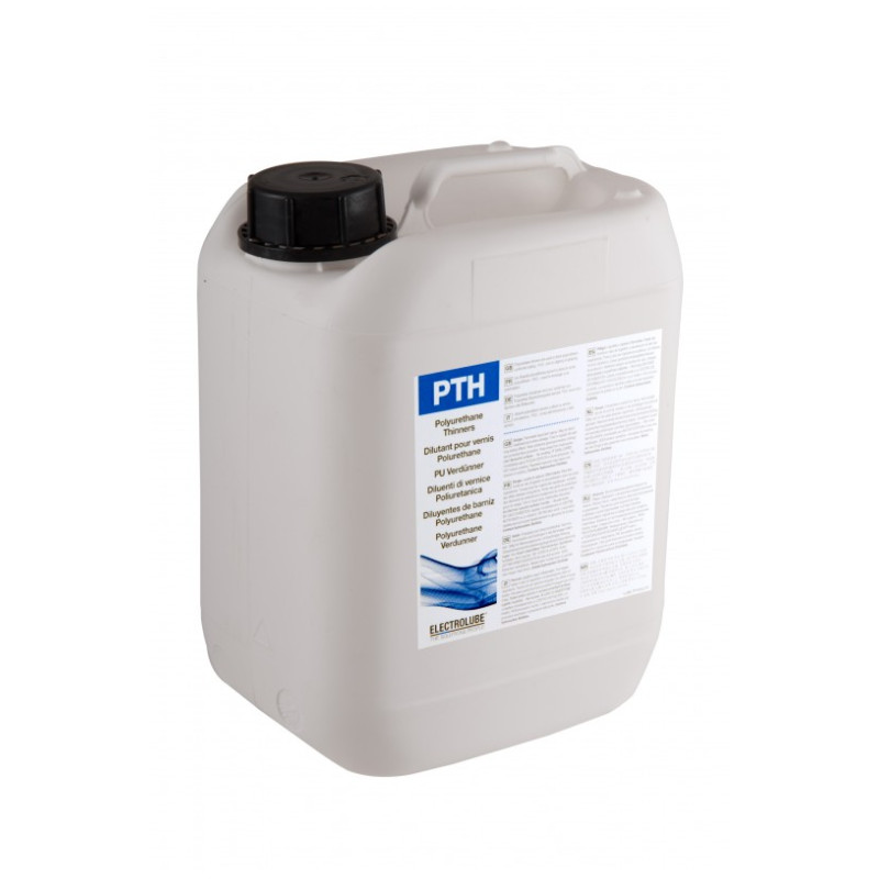 PTH ist ein hochreines Lösungsmittelgemisch, das für die Anwendung mit dem polyurethan-basierten Schutzlack PUC von Electrolube entwickelt wurde. PTH wird hauptsächlich zur Verdünnung des Schutzlackes bei Tauch- und Aufsprüh- Anwendungen eingesetzt.