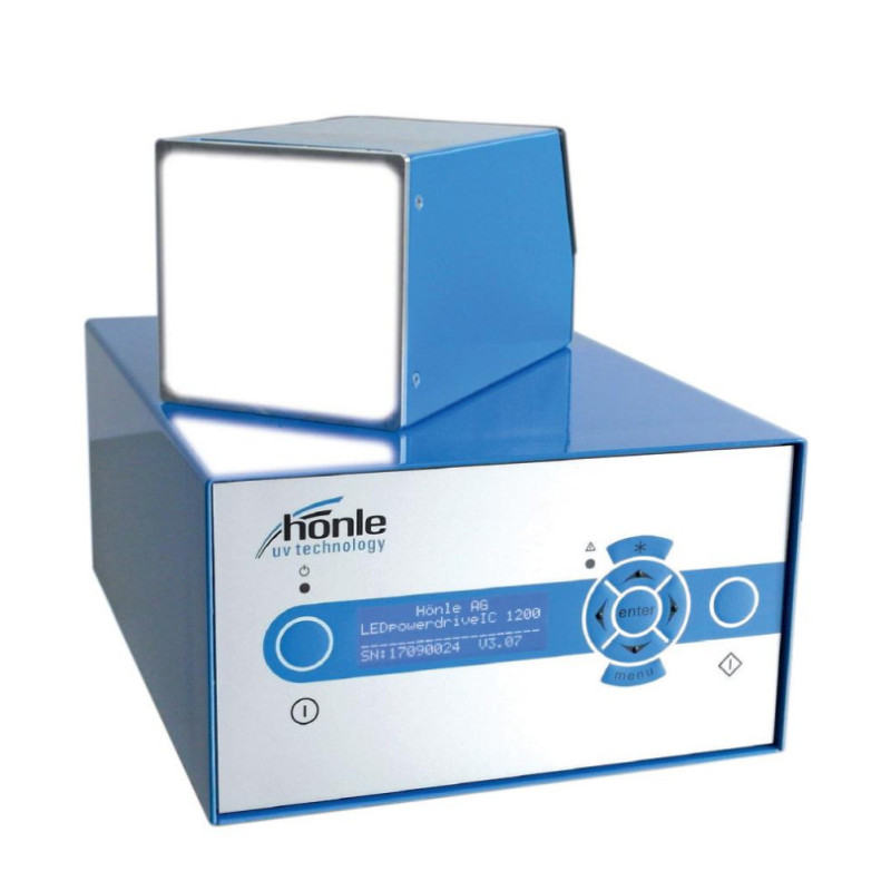 LED Spot 100 HP IC has been developed for all applications requiring a highly intensive UV irradiance over a large area. It produces up to 3.000 mW/cm2 of UV light intensity. The LED assembly, as well as an electronic power control, guarantee high intensity and homogenous distribution of light. The recognition of LED-malfunction and a comprehensive monitoring function provide for very high process stability. So, especially in fully automated production lines, repeatable results can be realised even in shortest cycle times.