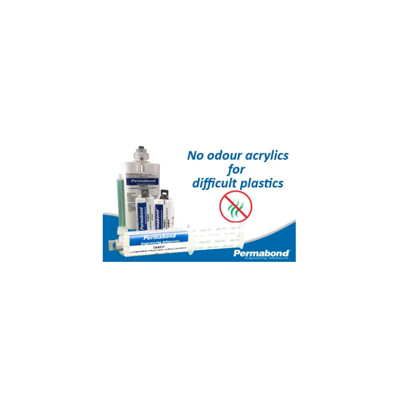 no odour acrylic adhesive. It has been developed to bond low surface energy plastics such as polypropylene and polyethylene with no primer or surface treatment required. It can also be used to bond a wide variety of other materials such as metals and composites and other plastics and is ideal for bonding dissimilar surfaces.