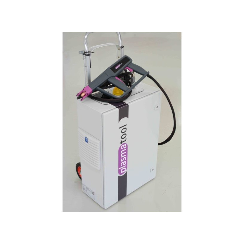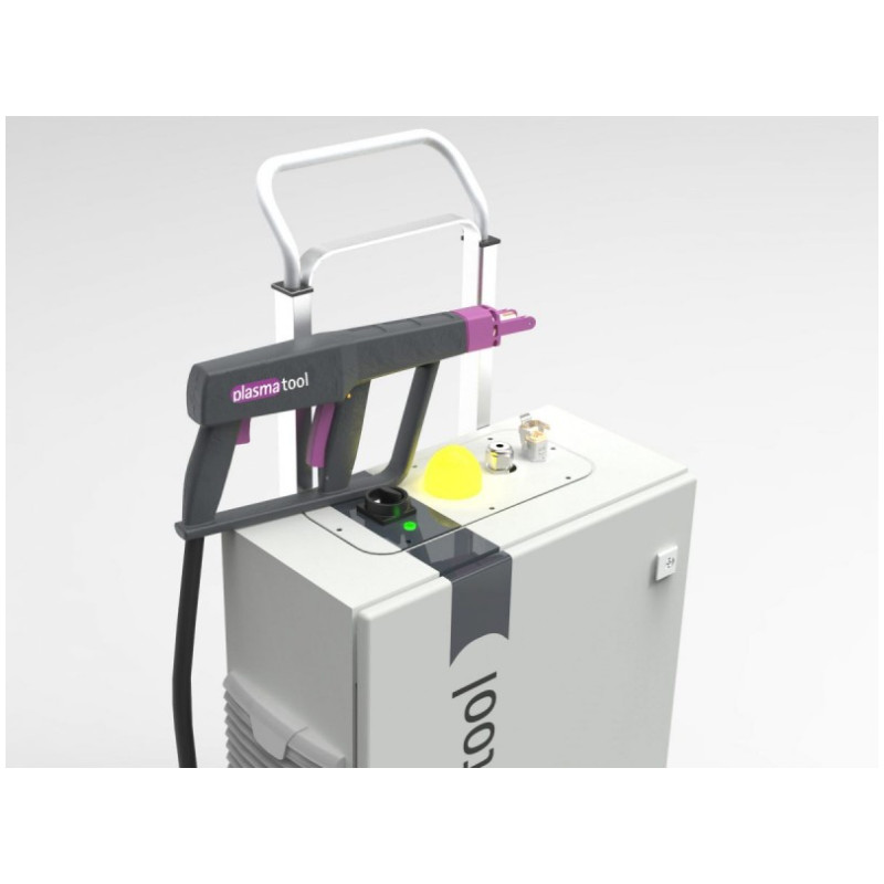 DesignDurch das Trolley-Design kann das Plasmatool problemlos an verschiedenen Orten eingesetzt werden. Die Zweihandbedienung und die Warnleuchte schützen den Anwender und Dritte. Die Handhabung des Plasmatool ist auf eine einfache Bedienung und die Sicherheit des Anwenders ausgerichtet.