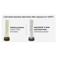 MOLYKOTE® P-3700 Anti-Seize Paste successfully suppresses yellowish hexavalent chromium formation at high temperatures while still offering fully functional antiseizing property!