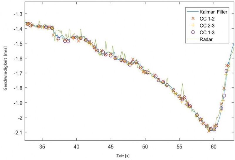 Sensorik Zur Bewältigung der automatisierten Trennung ist eine zuverlässige und robuste Sensorik mit entsprechender Software unerlässlich. Diese übernimmt u.a. die Erkennung der Kupplung sowie deren Status, die Bestimmung der Kupplungsposition und der Zuggeschwindigkeit. Zum Einsatz kommt ein Verbund aus mehreren Sensoren wie Radar, Radsensor und Laserdistanzsensor, deren Ergebnisse mit einem Kalman Filter fusioniert werden (siehe Graphik mit Messergebnissen).