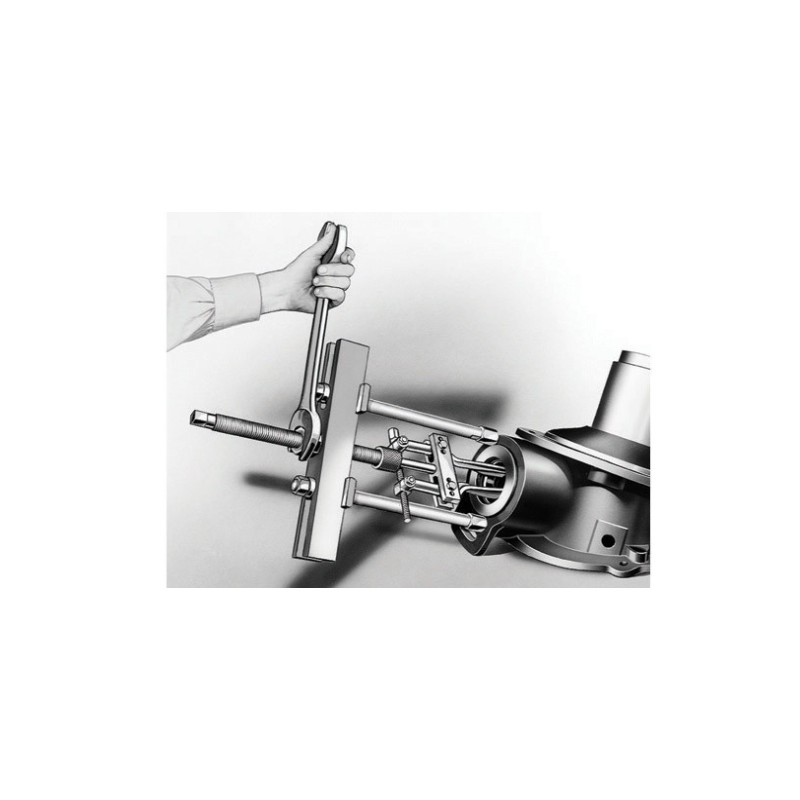 - Der Push-Puller-Abzieher kann zusammen mit einer Vielzahl von Adaptern, Abziehplatten und Innenabziehern verwendet werden.