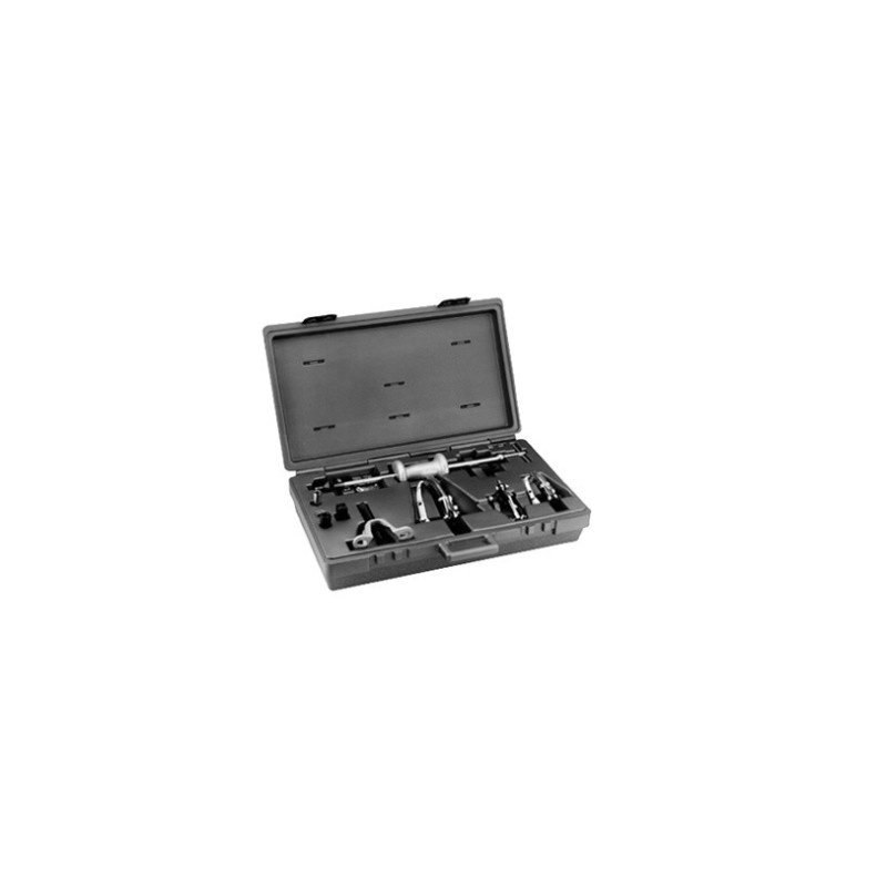 Anfrage für dieses Produkt!Neuer Werkzeugsatz für ein vielseitiges und breites Spektrum von Anwendungen. Mit einem Schlagabzieher (2,3 kg), Nabenabzieher, zwei Power Team Grip-O-Matic -Abziehern, einer Abziehplatte und einem Zahnrad- und Scheibenabzieher, alles zusammen in einem praktischen Kunststoffkoffer.