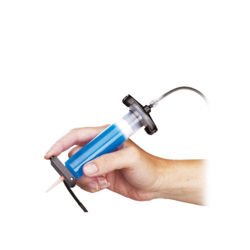 Anfrage für dieses Produkt!The finger switch assembly is designed to be used when hand held actuation is more convenient than the standard foot switch included with the TS Series dispensers and controllers. All Techcon Systems 700 Series syringe barrels fit the finger switch assembly and the easy turn clamping mechanism simplifies installation and removal of syringe barrels.