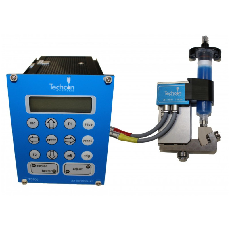 Jet Tech aus der Serie TS9000 ist ein piezoelektrisch und kontaktlos arbeitendes Dosierventil, das für Fluide mit einer Viskosität von max. 2 Mio. Cps (2.000 Pascalsek.) ausgelegt ist. Jet Tech besitzt besonders schnell arbeitende Düsen, die mehrere hundert exakte Beschichtungen in weniger als einer Sekunde aufbringen können. Jedes Ventilbauteil wurde mit dem Ziel konstruiert, die größtmöglichen Toleranzen zu bieten, und so gefertigt, dass auch höchste Anforderungen an Präzision erfüllt werden. Dies ermöglicht ein Optimum an Exaktheit und Wiederholgenauigkeit für tropfenweise Dosierung. Die Kompaktheit und modulare Konstruktionsweise von Jet Tech Ventilen unterstützen die Integration in vorhandene Robotiksysteme. Sie können die Ventilparameter ohne Einschränkungen einstellen. Dies ermöglicht es dem Bediener, die Eigenschaften der Düsenfunktionen je nach Fluidtyp zu ändern und den Prozess auf wiederholbare Dosierung hin zu optimieren.