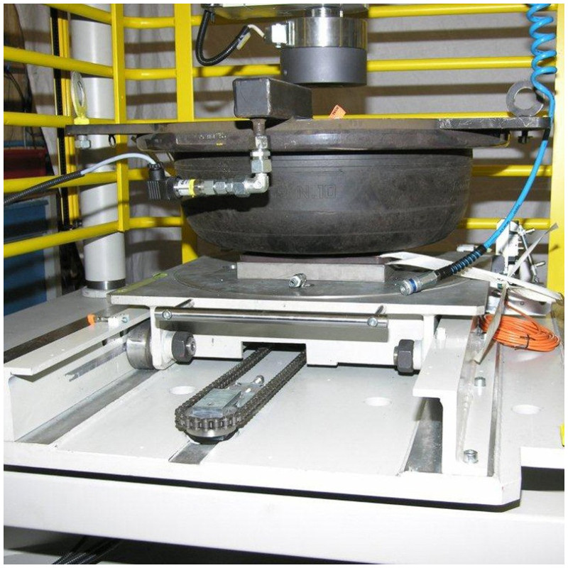 Anfrage für dieses Produkt!Positions- und kraftüberwachte, sowie positions- und kraftgeregelte Prüfmaschine zur Federkennlinienermittlung sowie Dichtheitsprüfung an Luftfedern/Balgen und deren zugehörigen Zusatzfedern.