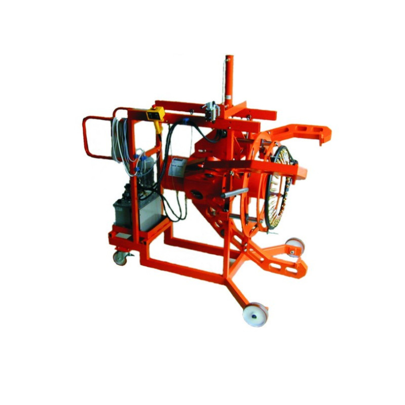 Mittels eines Hebezylinders können der Presszylinder und die drei Greifarme zentrisch zum Rad in die entsprechende Höhe angehoben werden. Über den Kulissenring werden Greifarme einfach und exakt geschlossen.
