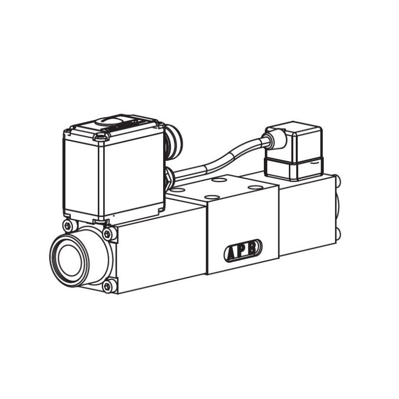 Wandfluh-Norm mit 4 Anschlüssen. Das Ventil verfügt über eine integrierte Lageregelung
